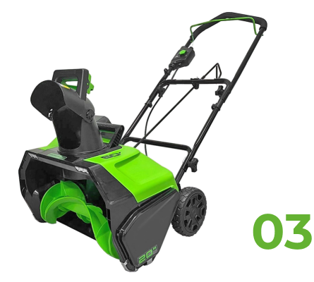 Длительное время работы от аккумулятора. Аккумуляторные батареи от Гринворкс обеспечивают продолжительную работу без подзарядки, что позволяет справляться с большими объемами сугробов без частых остановок.